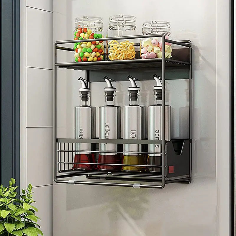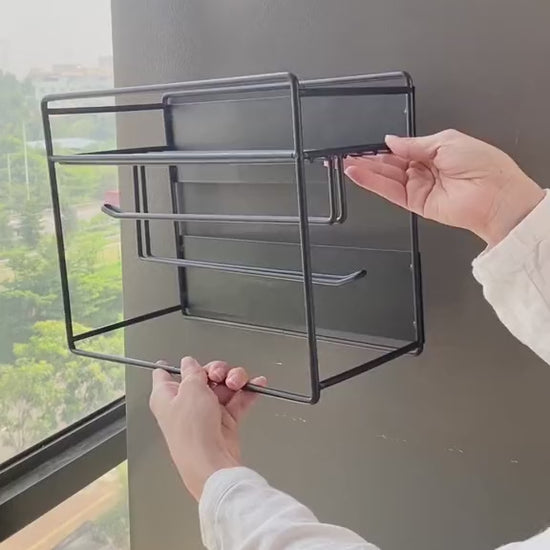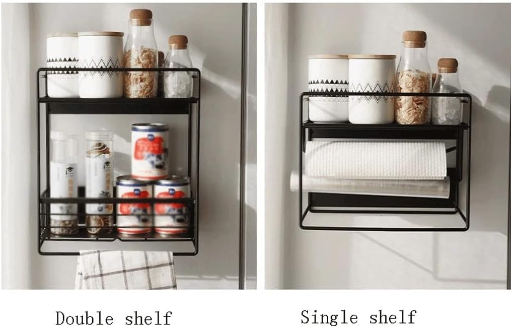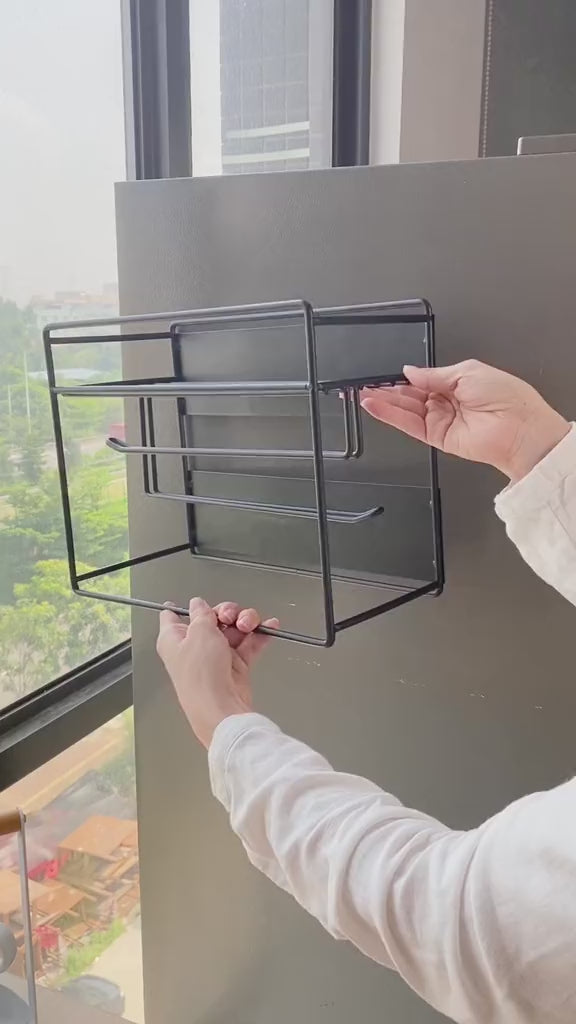 Apportez une touche d'élégance et d’organisation à votre cuisine avec cette étagère magnétique en métal noir, conçue pour s’adapter parfaitement à la surface de votre réfrigérateur ou toute autre surface métallique.